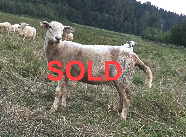 EBVs from 2025 lamb crop EPWWT data. Photo taken August 2025. She has been expose to a ram since 11/1/25 and is ready to go to a new home late November.