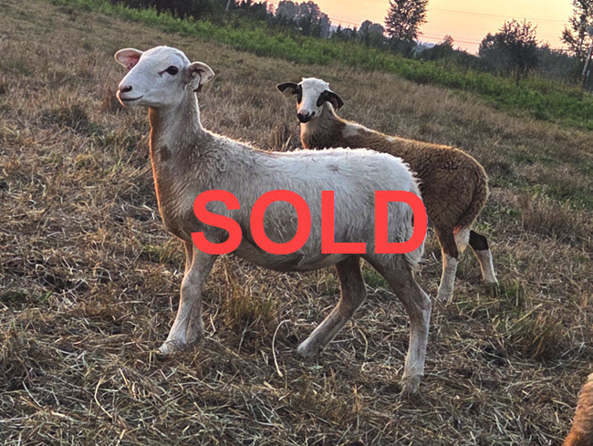 EBVs from 2025 lamb crop EPWWT data. Photo taken August 2025. She has been exposed to a ram since 11/1/25 and blood tested positive for pregnancy in February. She can travel to a new home until about mid-March, then should stay here to lamb, and will be re-listed with lambs at side in April.